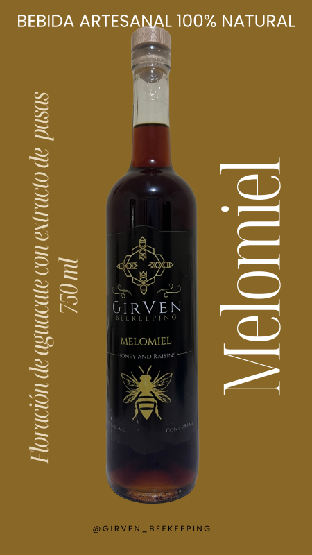 Bebida fermentada a base de miel de floración de aguacate y extracto de pasas. 100 natural y artesanal.